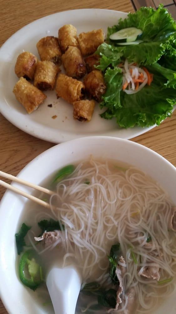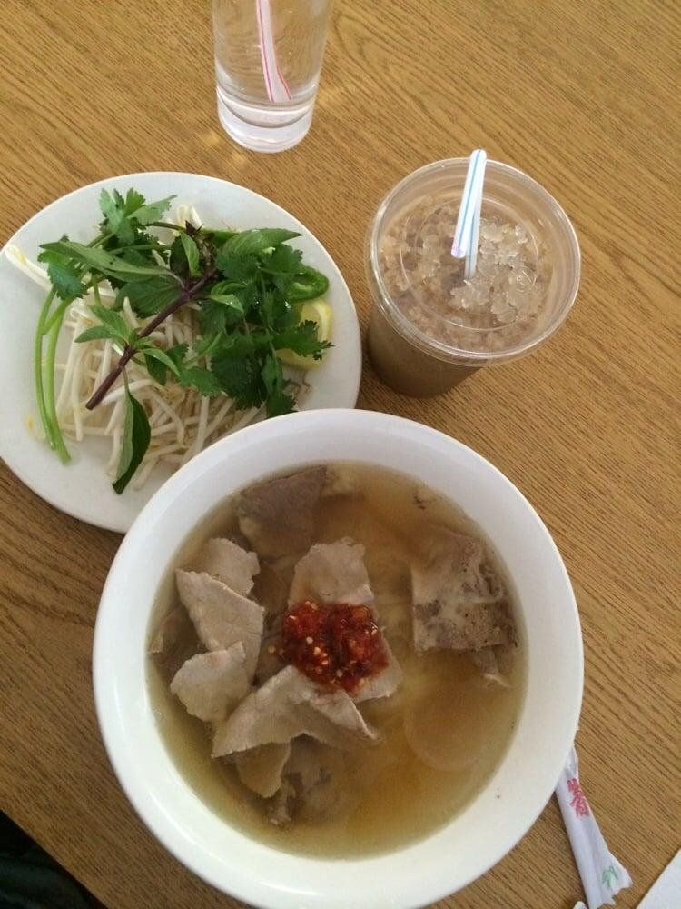 Was looking for the best rated pho in that area and this place came up, so off I went. I was amused to see that they sort of cater to the Korean population; there were Korean translation in the menu and everything! This place has all your standard Vietnamese dishes: pho, bun, and rice dishes. I went for their standard combo pho and ordered the small after seeing how big their bowls were! I was plenty hungry but the small was perfect for me. They had very fresh sprouts and herbs for the pho (always a telling indicator of quality), and overall it was a perfectly satisfying pho experience. Their fried spring rolls had interesting wrappers, though: instead of the usual smooth brown wrappers it was all bubbly and kinda chewy. Not bad, but a little unusual; I wonder what kind of wrappers they use for them to come out like that. Well, it was of no consequence, as everything, including the iced coffee, was quite delicious. The prices weren't the cheapest, but I was ok paying them for the quality of food I got.